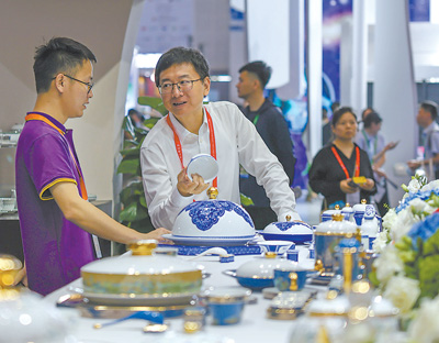 图为消博会全球特色消费展区景德镇展台。